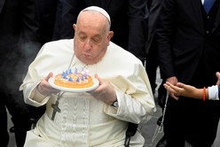 Francisco, que este jueves cumplió 12 años de papado, recibió una torta como presente en el hospital Gemelli de Roma, Italia, donde se encuentra internado desde el pasado 14 de febrero.