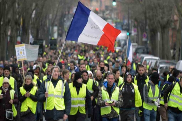 Los partidarios del movimiento chalecos amarillos salen a las calles de París para manifestarse contra las restricciones por el COVID-19 y las políticas económicas del presidente Emmanuel Macron.