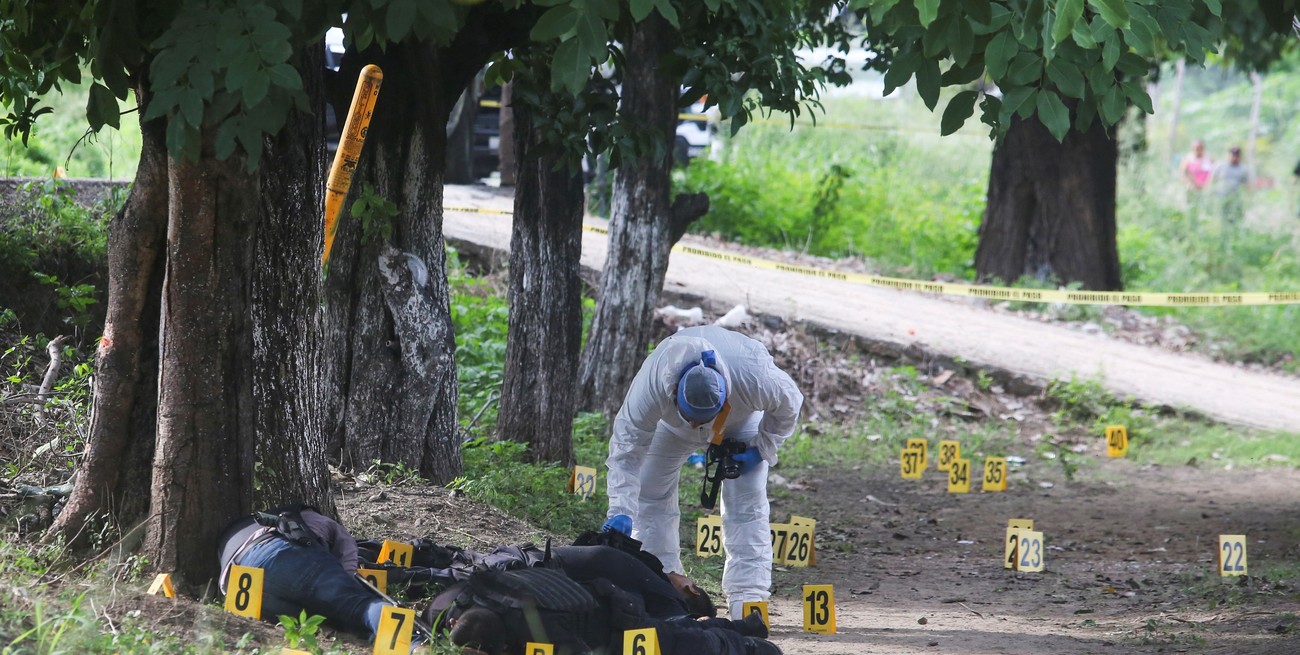Un recorrido realizado por la zona se pudo encontrar a cinco numerarios de la policía municipal bocabajo, esposados y asesinados en un monte de tierra donde dejaron los cuerpos acribillados.