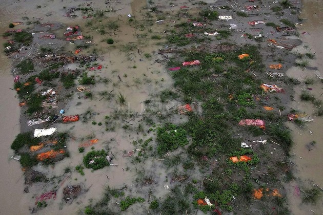En el pico de la segunda ola de coronavirus muchos fallecidos fueron sepultados en tumbas poco profundas a orillas del río. Ahora, con las lluvias torrenciales y el desborde de las aguas, los cuerpos salieron a flote. Los cadáveres recuperados están siendo incinerados en la costa del río.