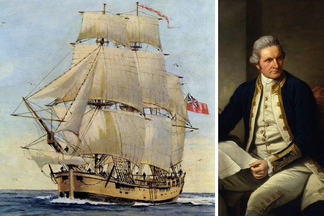 La Marina británica compró el ‘Endeavour‘ en 1768 para un viaje de investigación en el Pacífico. Cook llegó con él hasta Botany Bay, en la costa este de Australia en abril de 1770. La Marina volvió a utilizarlo después durante la Guerra de Independencia de los Estados Unidos, antes de ser hundido junto a una decena más de barcos cerca de Newport.