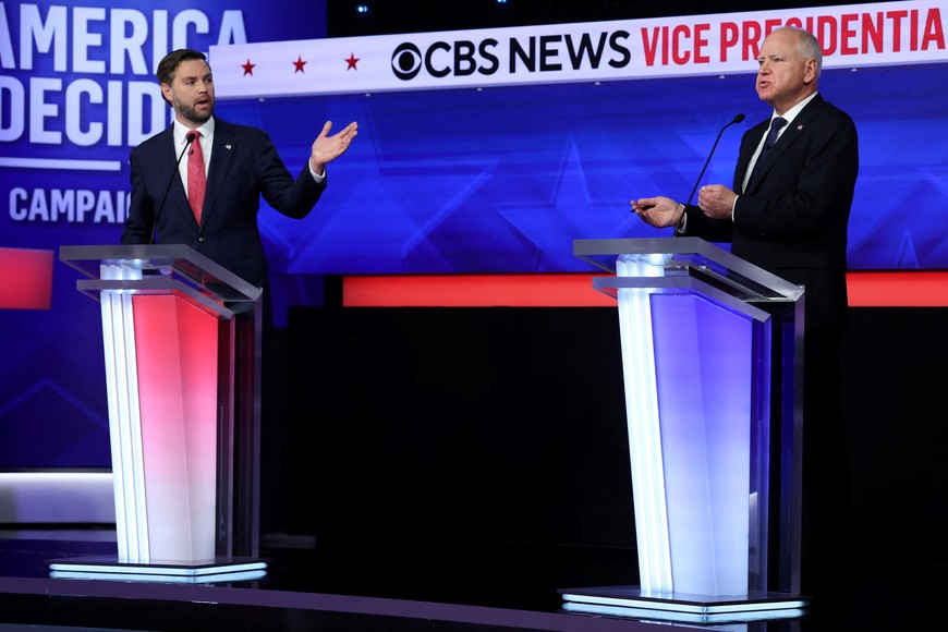 Este martes, J. D. Vance, senador republicano de Ohio y número 2 en la fórmula de Donald Trump, y Tim Walz, gobernador de Minnesota y compañero de fórmula de Kamala Harris, se enfrentaron en Nueva York, Estados Unidos, en el único debate vicepresidencial de cara a las elecciones del 5 de noviembre.