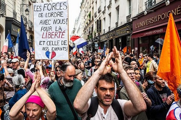 "Libertad", "No a la dictadura sanitaria", "Macron renuncia", gritaban miles de manifestantes congregados a orillas del río Sena, en el centro de París, en una de las tres protestas celebradas en la capital.