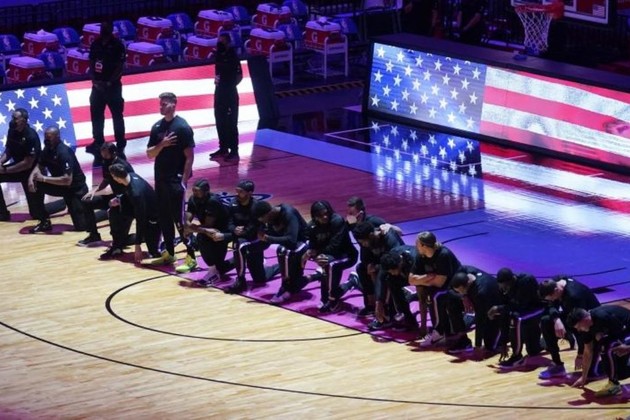 La mayoría de jugadores y los técnicos de ambos equipos se arrodillaron antes del partido que ganó Miami (107-105) para escuchar el himno nacional, gesto que se repitió en otros encuentros de la NBA, según consignó la agencia DPA.