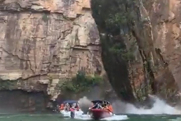 El desastre, que fue grabado con los celulares de otros viajeros que se encontraban en el lugar, se produjo el sábado sobre mediodía hora local, cuando una enorme roca se desprendió de la pared del cañón y se precipitó sobre cuatro barcas que se encontraban en el lago Furnas.