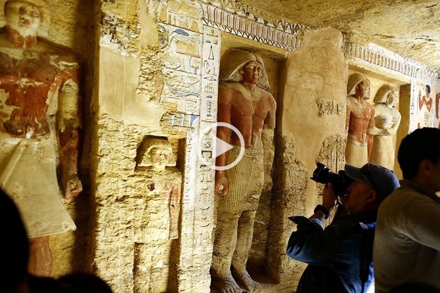 Arqueólogos egipcios han descubierto cerca de El Cairo un sepulcro de 4.400 años de antigüedad extraordinariamente bien conservado que destaca por las coloridas pinturas de las estatuas en el interior de la tumba, informó el ministro de Antigüedades del país norteafricano, Jalid al Anani.