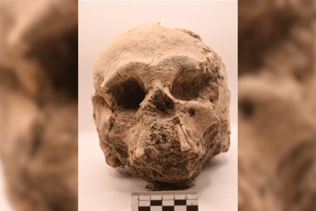 Cráneo descubierto en el yacimiento arqueológico de Uaxactún, en la Reserva de la Biosfera Maya, departamento de Petén, Guatemala. Crédito: Xinhua/Ministerio de Cultura y Deportes de Guatemala