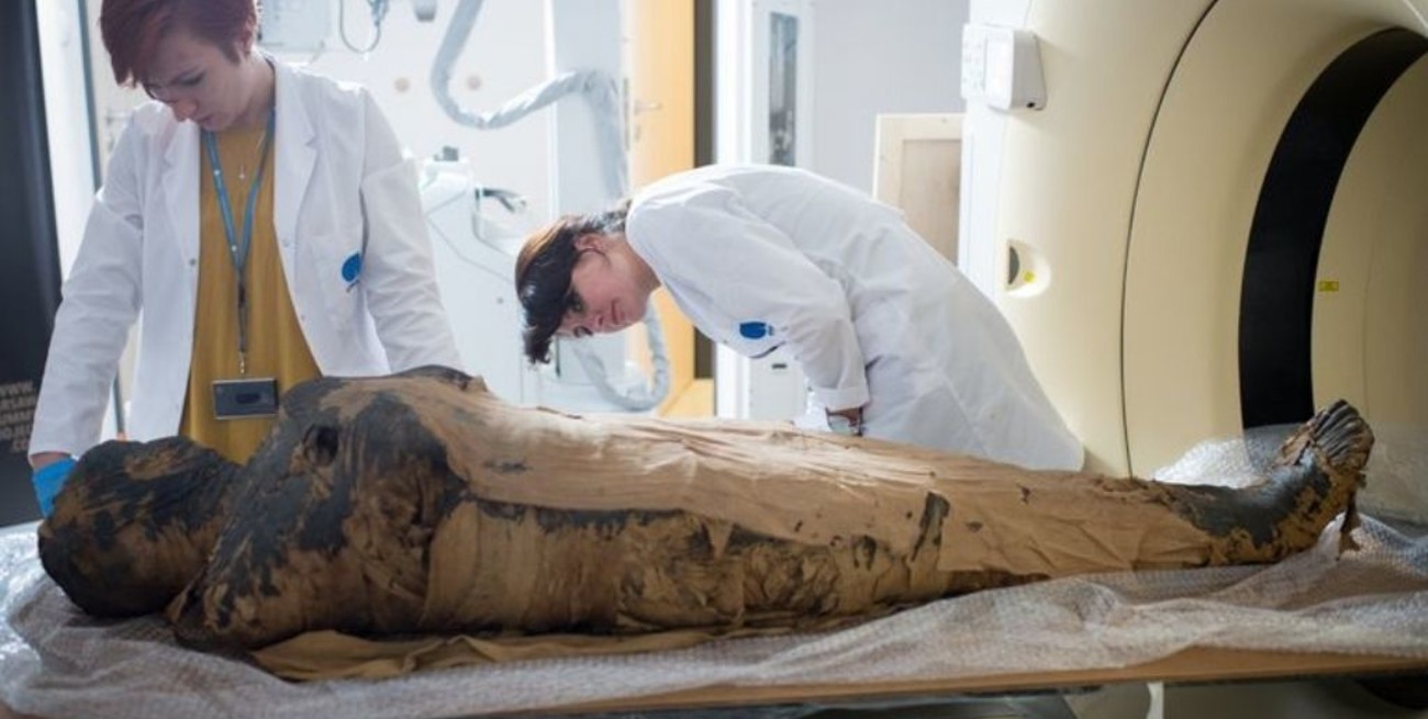 Científicos polacos indicaron este jueves que descubrieron una momia egipcia embarazada, la primera en este estado en el mundo, en tanto realizaban radiografías de sus restos de hace 2.000 años en el Museo Nacional de Varsovia.
