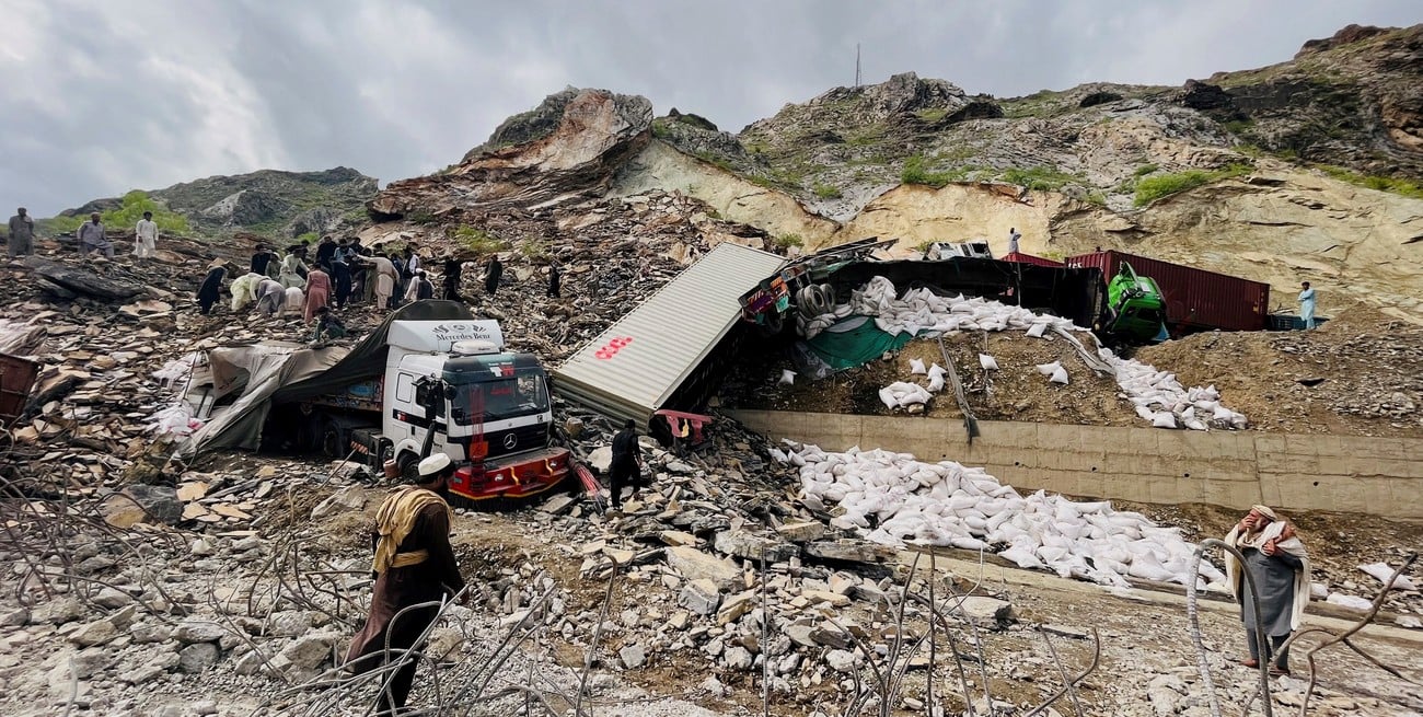 El derrumbe se produjo al amanecer del pasado martes en el cruce fronterizo de Torkham, donde decenas de camiones permanecían estacionados en una colina.