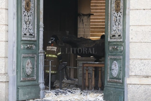 Bomberos y empleados del Museo Nacional de Brasil rescataron piezas de valor del lugar en ruinas.