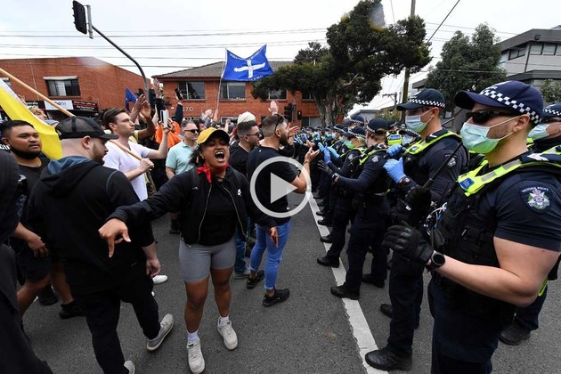"Lo que hemos visto hoy es un grupo que se unió, no para exigir más libertades, sino para enfrentarse y luchar con la policía", declaró a la prensa el comandante de la Policía de Victoria, Mark Galliott, citado por la agencia de noticias AFP.
