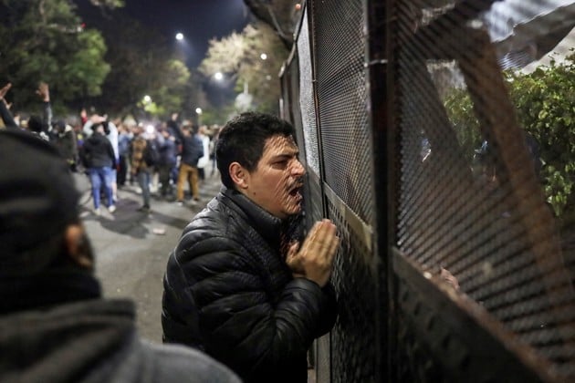 Manifestantes venezolanos atacaban a pedradas la embajada de su país en la Argentina tras conocerse los resultados electorales oficiales, que proclamaban la reelección del presidente del país caribeño, Nicolás Maduro.