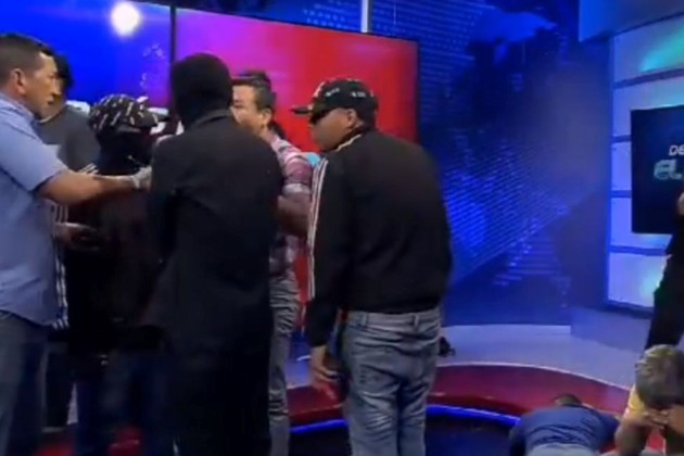 Imágenes de televisión en directo mostraron a personas encapuchadas en el interior del canal TC Guayaquil.