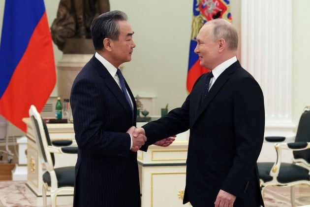 El presidente de Rusia, Vladimir Putin, le da la mano al director de la Oficina de la Comisión Central de Asuntos Exteriores de China, Wang Yi, durante una reunión en Moscú. Créditos: Anton Novoderezhkin/ReutersEl presidente de Rusia, Vladimir Putin, le da la mano al director de la Oficina de la Comisión Central de Asuntos Exteriores de China, Wang Yi, durante una reunión en Moscú. Créditos: Anton Novoderezhkin/Reuters