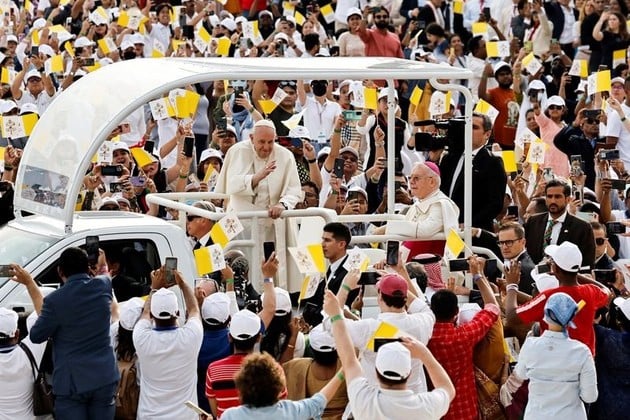 Tras haber dedicado los primeros dos días de su histórica visita a Bahréin a encuentros con autoridades y líderes musulmanes, el Papa celebró hoy su única misa en el país árabe y luego se reunió con los jóvenes de 29 nacionalidades que estudian en el colegio gestionado por monjas carmelitas.