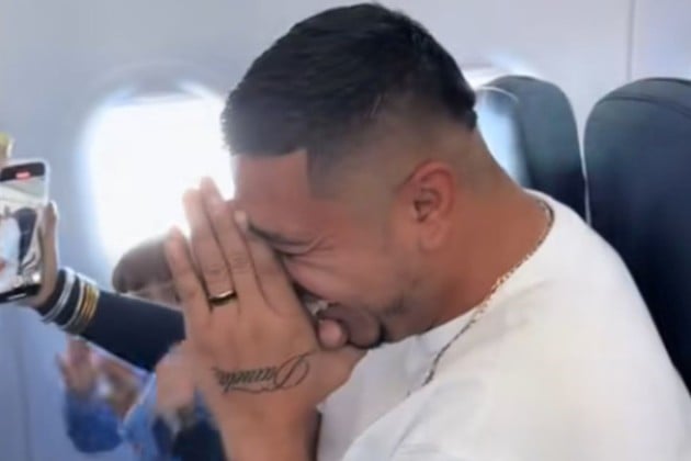 La reacción del hombre -entre shock, emoción y una sonrisa que lo dijo todo- desató aplausos y convirtió el momento en un video viral en redes, donde usuarios celebraron la ocurrencia y el clima de complicidad que se generó a bordo