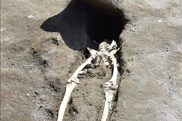 Esta víctima de la erupción del volcán en el año 79 es la primera hallada en las nuevas excavaciones de la denominada región V de Pompeya. Según explicaron los expertos, la caja torácica del hombre quedó destrozada.