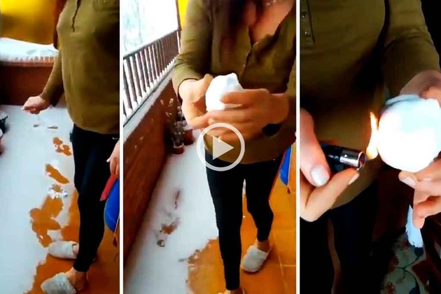 Uno de los videos que más se han difundido en las redes muestra a una mujer que hace una bola con la nieve caída en su terraza, se la lleva al interior de su vivienda e intenta derretirla allí con la llama de un mechero para demostrar que "no es nieve de verdad".