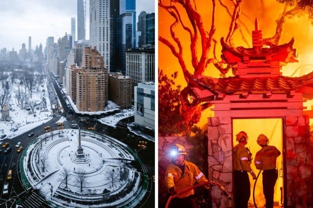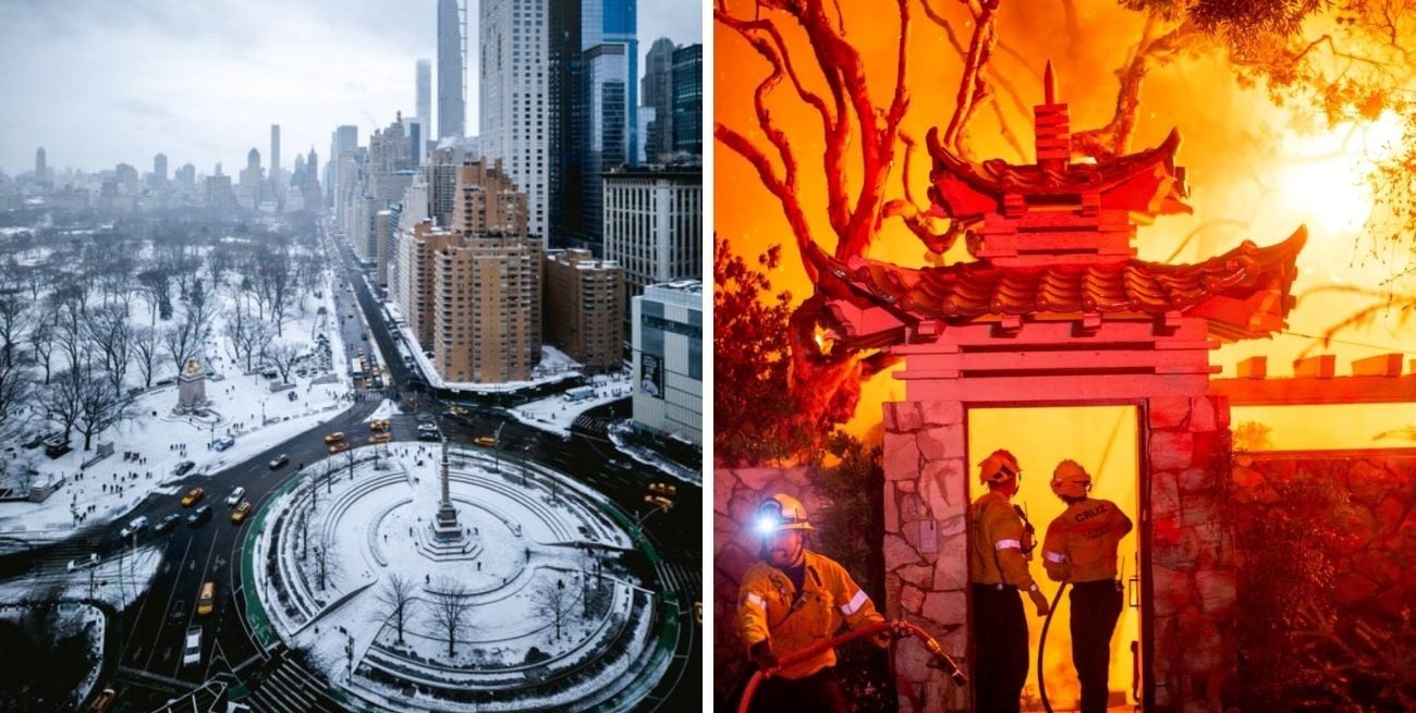 Por un lado, las intensas nevadas de Nueva York y ciudades cercanas como Washington. Por otro, las temibles llamas que arrasan todo a su paso en Los Ángeles. La confrontación de los países está bien marcada y las imágenes que cada uno produce son espectaculares.