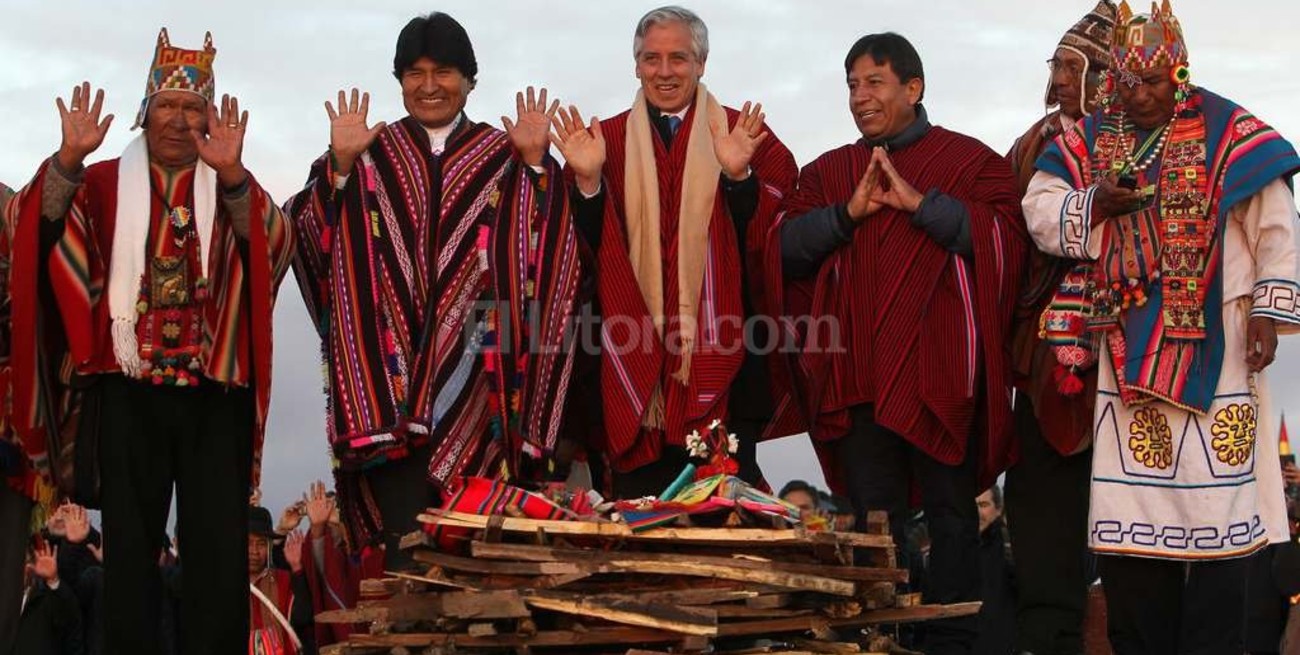 Morales participó a la salida del sol en una celebración junto con su vicepresidente, Álvaro García Linera, y 21 ministros y otras autoridades en una ceremonia andina en la ciudadela de Tiahuanacu, a 81 kilómetros al oeste de La Paz.