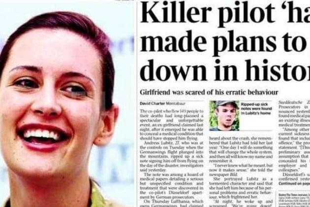 Una mujer que dice haber sido novia del copiloto que presuntamente estrelló de forma deliberada el avión de Germanwings en los Alpes franceses con 150 personas a bordo asegura que el joven estaba en tratamiento psiquiátrico y que más de una vez le había dicho que haría algo por lo que todo el mundo le conocería.