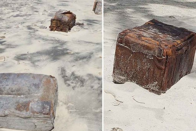 La embarcación había zarpado desde el sudeste asiático con destino a Europa, pero en el camino fue hundida por un destructor estadounidense. El oceanógrafo Carlos Teixeira, de la Universidad Federal de Ceará, explicó que las cajas son fardos de caucho.