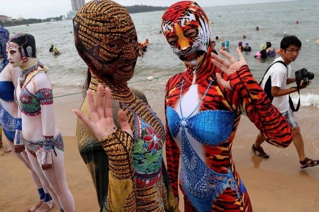 Los "facekinis", máscaras faciales con orificios para los ojos y la nariz, las mangas para cubrir los brazos, los sombreros de ala ancha y las chaquetas ligeras de tejido resistente a los rayos UV se han hecho especialmente populares.