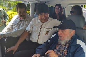 El líder de la revolución cubana, Fidel Castro, y el presidente de Venezuela, Nicolás Maduro, sorprendieron hoy en su hotel donde se hospeda en La Habana al mandatario boliviano, Evo Morales, al buscarlo para posteriormente dirigirse juntos en una combi a la celebración del 89no cumpleaños del ex jefe de Estado.