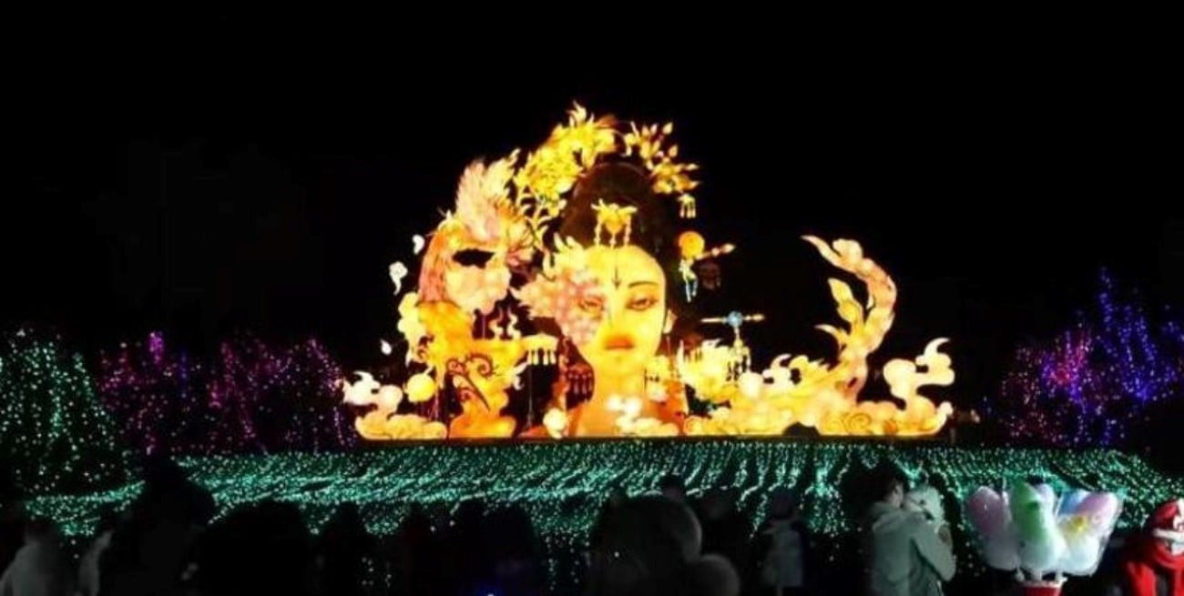 La “flor de hierro” aparece integrada a una oferta más grande: más de 40 conjuntos de luces temáticas, puntos de foto vinculados al “año del caballo” y números de folclore como danza del dragón y del león, además de ópera tradicional y juegos interactivos para familias.