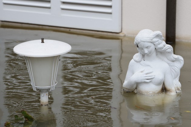 Una vista de una escultura sumergida debido a las inundaciones después de que las fuertes lluvias golpearan la región italiana de Emilia Romagna, en Lugo, Italia, el 19 de mayo de 2023. Foto: Reuters