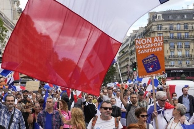 El fin de semana pasado, cerca de 215.000 personas participaron en marchas contra el pase sanitario a lo largo y ancho del país, según cifras oficiales, frente a las 237.000 que se habían unido a las protestas la semana anterior .