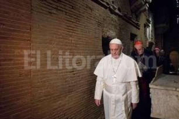 El papa Francisco se convirtió ayer en el primer pontífice en descender a las catacumbas de la Necrópolis vaticana, donde se acercó a la antigua tumba de San Pedro y se detuvo a orar.