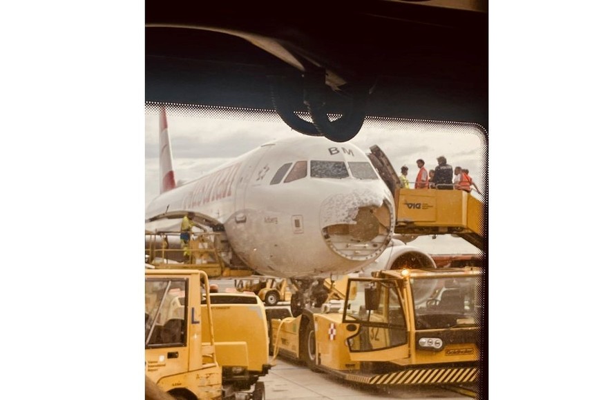 El fenómeno climatológico tuvo lugar a 150 kilómetros al suroeste de Viena. La fuerza de los trozos de hielo fue tan potente que la trompa del avión quedó destruida y, en las imágenes difundidas por la prensa local, se observa que parte de la estructura se desprendió y dejó al descubierto el interior de la nave.