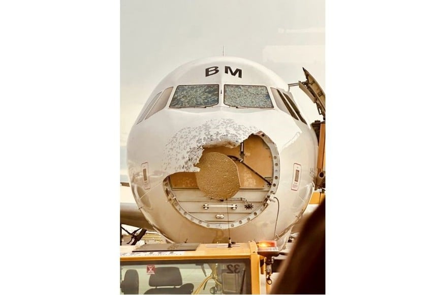 El mismo vocero de la aerolínea agregó que "según las primeras informaciones, el granizo dañó las dos ventanillas delanteras de la cabina del avión, el morro del avión y algunos paneles."