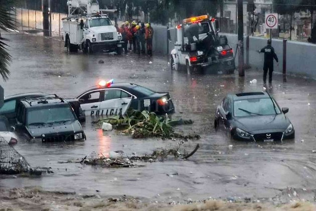 Mazatlán se convirtió en una de las ciudades más azotadas por el paso del fenómeno meteorológico. Allí, la fuerte lluvia que comenzó a caer desde las cuatro de la madrugada dejó las calles del Centro Histórico sumergidas bajo el agua, y arrastró numerosos vehículos.