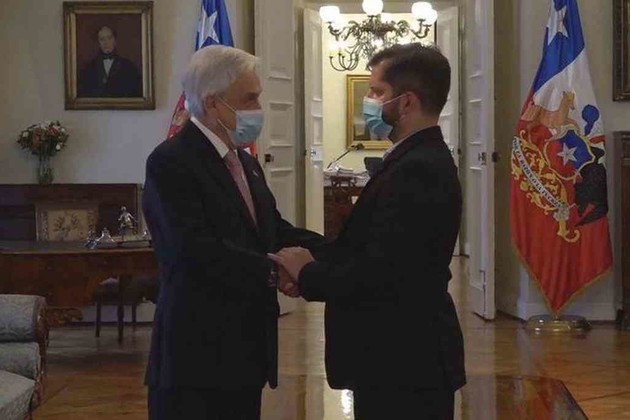 Los presidentes electo y saliente de Chile, Gabriel Boric y Sebastián PIñera, respectivamente, dieron este lunes inicio formal a la transición con un encuentro en el Palacio de la Moneda, un día después de que el candidato de izquierda hiciera historia y ganara las elecciones por amplio margen.