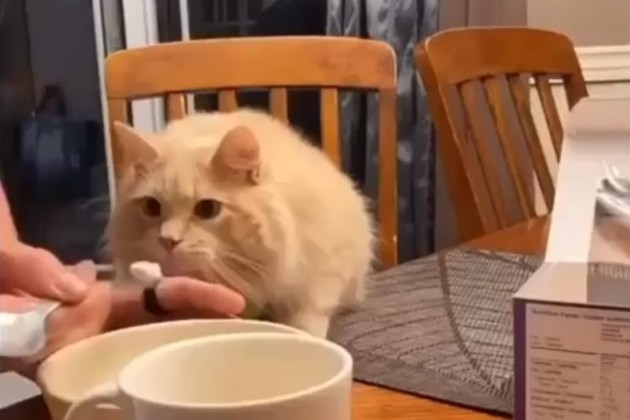 Una joven oriunda de Canadá filmó el momento en el que su novio le dio un pequeño pedazo de helado al gato que tenían. El felino se acercó curioso a ver lo que le estaban ofreciendo. Una vez que lo comió, se tiró para atrás en clara reacción al frío que le provocó en la cabeza.