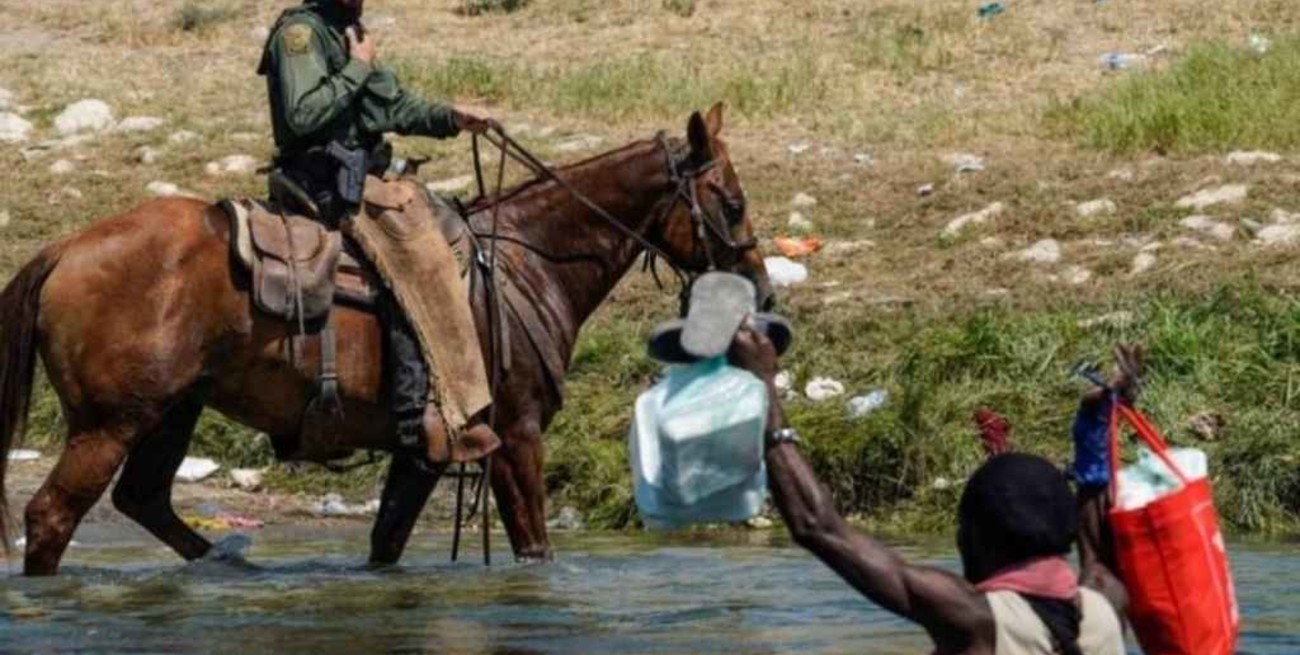 En una instantánea difundida el domingo en los medios, un guardia fronterizo a caballo agarra a un hombre por el cuello de su remera en el lado estadounidense del Río Grande, la frontera natural entre Estados Unidos y México, cerca de la localidad de Del Río, en el sureño estado de Texas. En otra imagen, un agente montado mantiene a raya a un grupo de migrantes con largas riendas de cuero, en una postura amenazante, para obligarlos a retroceder.