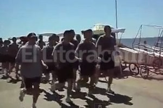 En el video se ve a los integrantes de una formación militar en ropa deportiva que corren mientras repiten a coro la frase de un instructor: “Argentinos mataré, bolivianos fusilaré, peruanos degollaré”.