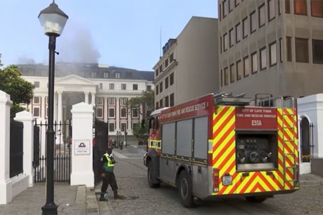 Decenas de bomberos luchaban este domingo para sofocar un gran incendio de diez horas en la sede del Parlamento sudafricano en Ciudad del Cabo que provocó la caída de parte del techo del edificio, informaron autoridades.