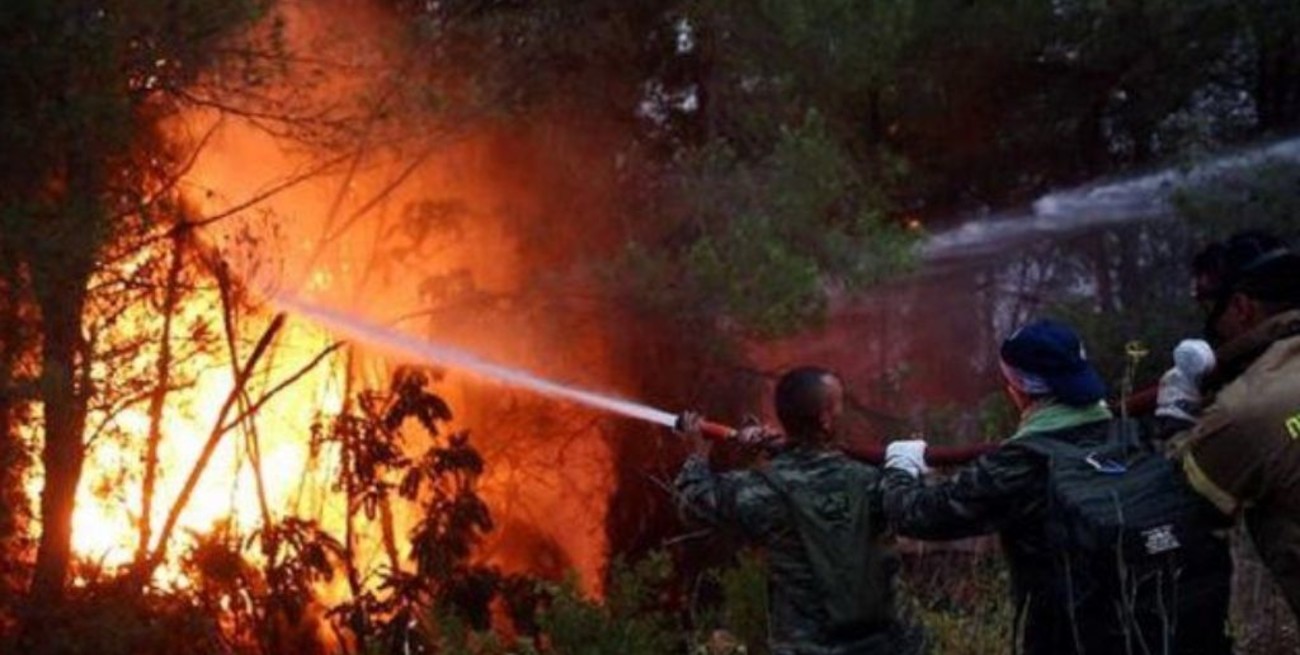 Mientras tanto, las llamas han llegado al pequeño pueblo de Vasilika y un frente de fuego de 6 kilómetros quema un vasto bosque de pinos, acercándose al pueblo de Gouves.