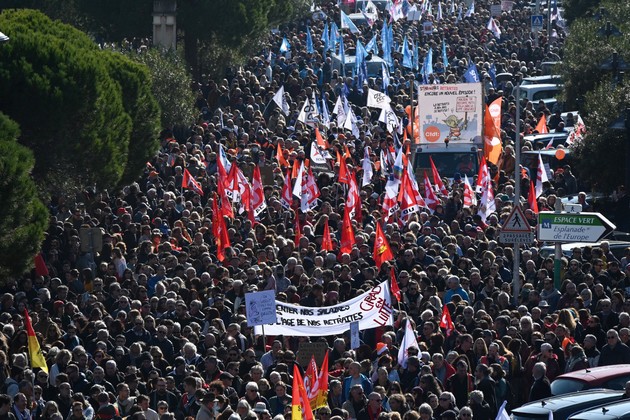 En esta nueva jornada de protestas masivas encabezadas por los sindicatos que amenazaron con "paralizar" el país en marzo si el Ejecutivo "no escucha el rechazo popular" a la medida.