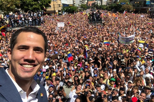 "Ustedes (en el chavismo) hablan de una supuesta guerra que no va existir (...) ¿quién estaría dispuesto a ir a la guerra si (Maduro) no tiene ni siquiera el respaldo y el respeto de sus vecinos y el mundo?", dijo Guaidó al término de la manifestación.