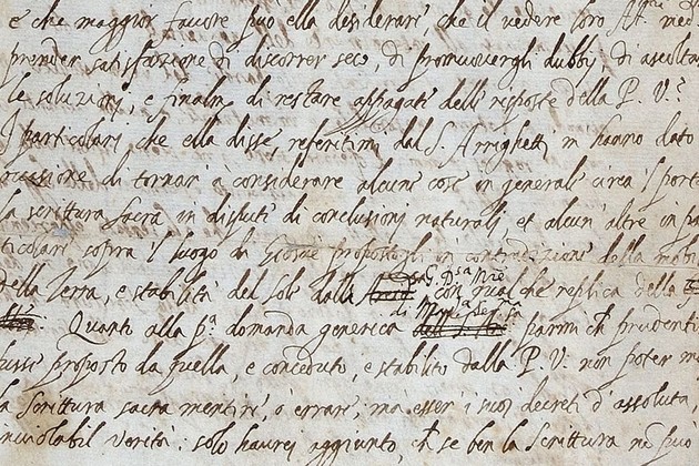 En siete páginas, escritas el 21 de diciembre de 1613, Galileo, que firma con sus iniciales G.G., exponía a un amigo su teoría sobre el movimiento de la Tierra en torno al Sol, opuesta a la tesis de la Iglesia según la cual nuestro planeta era el centro inmóvil del universo.