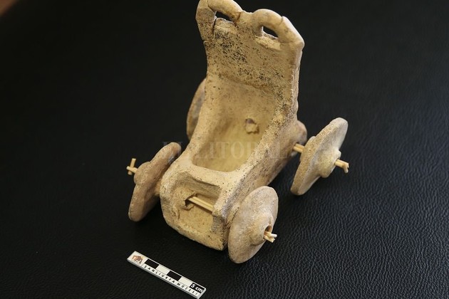 Los arqueólogos hallaron una miniatura de carroza con cuatro ruedas, que tendría 5 mil años de antigüedad. Podría decirse que es uno de los "primeros autitos de juguete" de la historia.