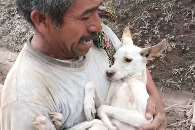 Durante la huida por la erupción del Volcán de Fuego, Ignacio decidió volver a su casa y rescatar a su perrita. Afortunadamente, lo hizo con éxito. Brava estaba asustada, pero esperaba que sus fieles dueños la rescataran.
