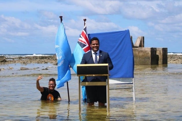 Gentileza Simon Kofe, ministro de Justicia, Comunicaciones y Relaciones Exteriores de Tuvalu, en la conferencia del COP26.