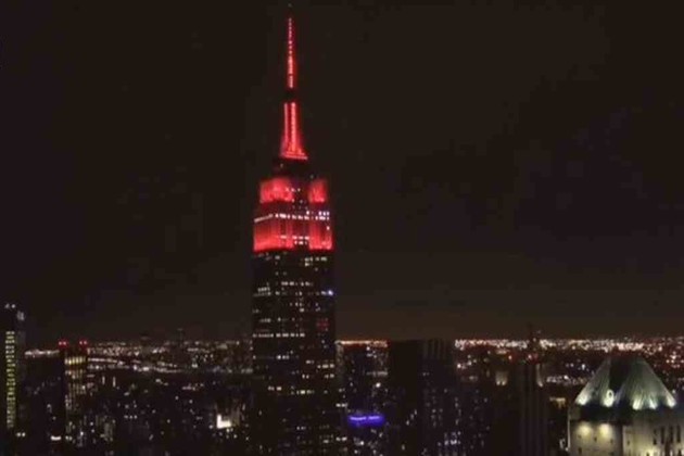 La cima del icónico rascacielos de la ciudad de Nueva York destellaba en rojo y blanco, mientras que los pisos superiores presentaban luces rojas pulsantes, que imitaban los latidos del corazón.