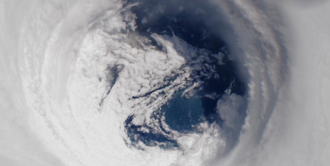 Las imágenes muestran un anillo de nubes densas girando a gran velocidad alrededor de un núcleo de calma aparente, una escena hipnótica que oculta la violencia que la tormenta desata fuera de ese punto.