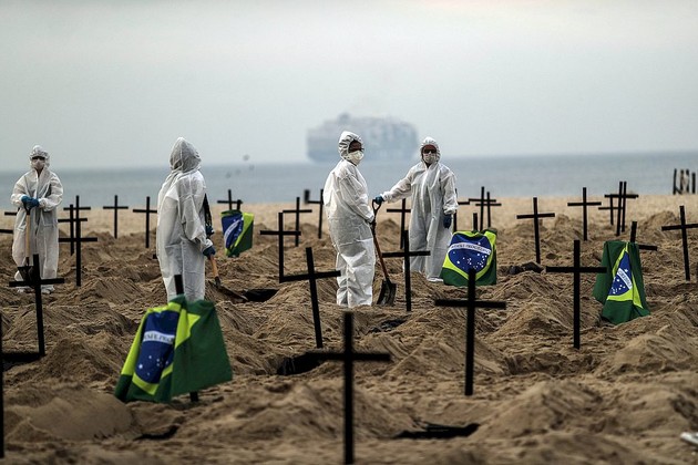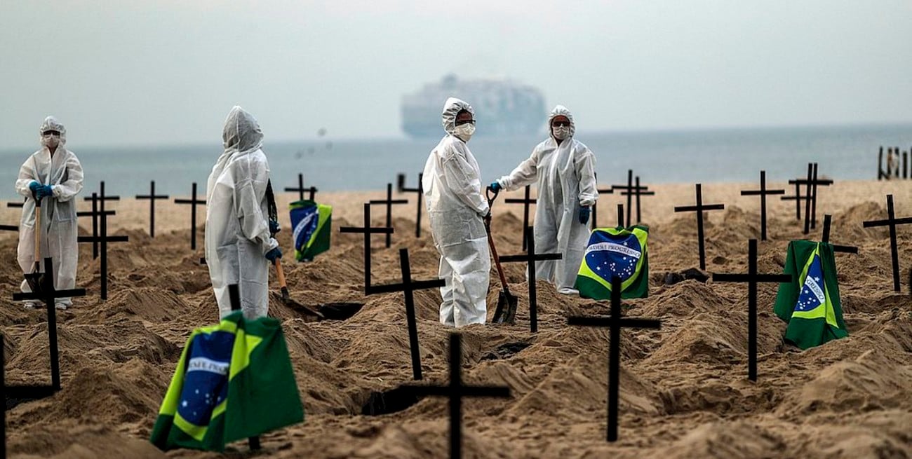 Impactante protesta contra Bolsonaro en Río de Janiero: cavaron fosas comunes en la playa de Copacabana